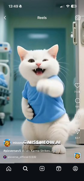 目前,PixVerse已成为海外用户制作爆款创意视频的首选工具之一。早在6月,话题#99problem1solution 出现时,素人用户在短视频平台发布用PixVerse制作的视频第一天,就获得了超过百万视频播放量,全球火爆程度可见一斑!PixVerse V5上线后,海外用户@Missmeow.ai制作了猫猫情景连续剧,三集播放量已超千万!