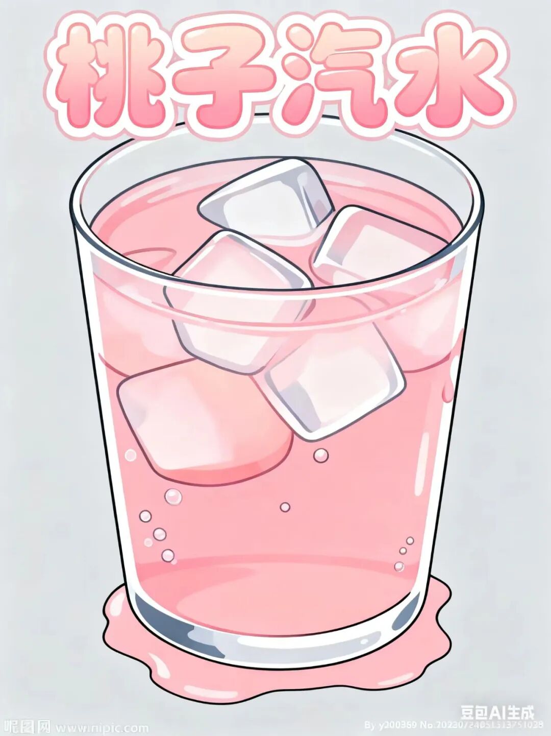 我们看到下方还有水汽融化的水渍,非常细节,最后再让其转变成卡通风,上面写着桃子汽水。