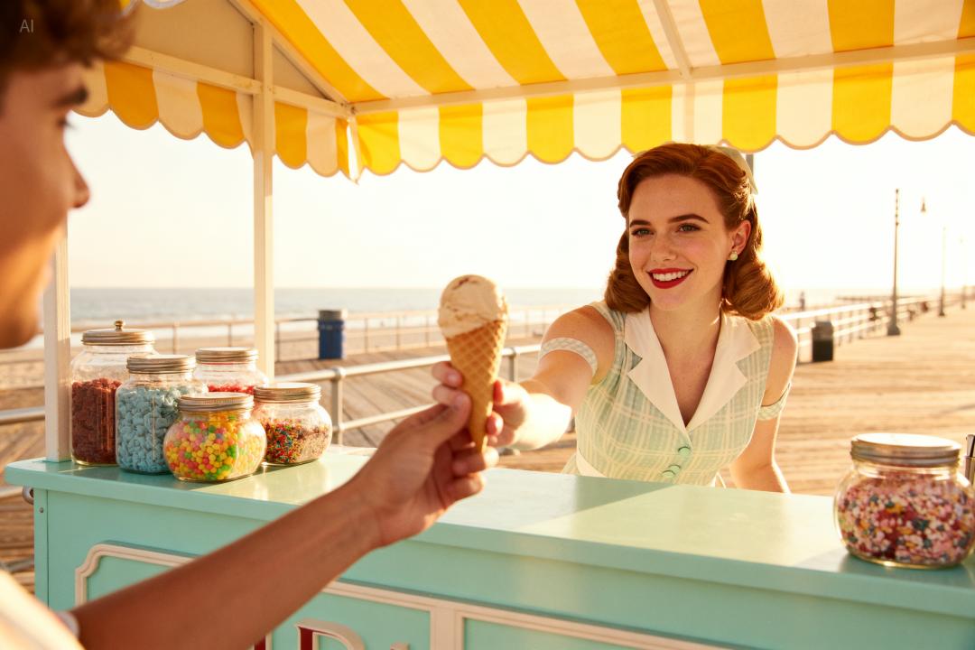 整体来说很不错,非常准确的捕捉了抽象图画中的动作,并且除了动作改变外还保证了其它的特征不变,也没有什么错位混乱的问题和违和感。 不过有一点实锤,豆包真的把李荣浩眼睛变大了,豆包的另一个身份不会是李荣浩粉丝吧~ 3、理解文字,风格转变,小白也能秒变艺术大师 除了一致性外,理解能力也非常重要,提升自然语言的理解的准确度才可以满足对应的需求。 听说这次豆包Seedream 4.0不仅能听懂字面意思还能自己推断思考,用一个很简单的方法。上传一张冰块的图片,输入半小时后会是什么样子。