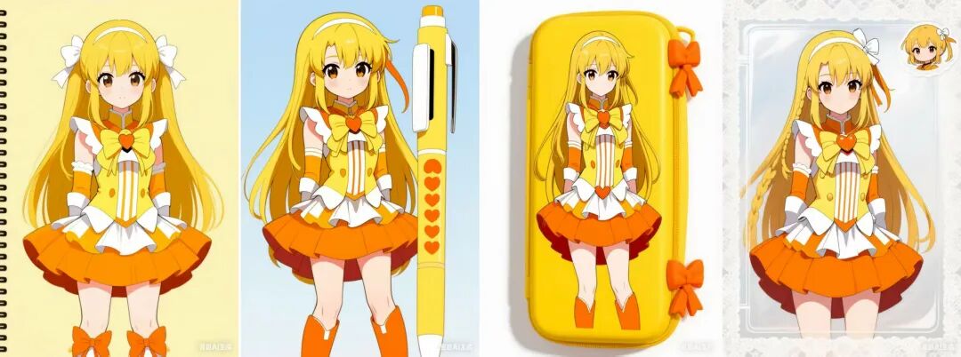 不得不说,豆包是有审美的,并且在没有明确指示的情况下还可以理解生成东方明珠,总体来说这个海报大气美观有特点。 我们再看看用一张图片能不能解决商家的小问题,上传一张小孩都喜欢的小兰姐姐的图片,输入“根据这个图片设计一套文具”。