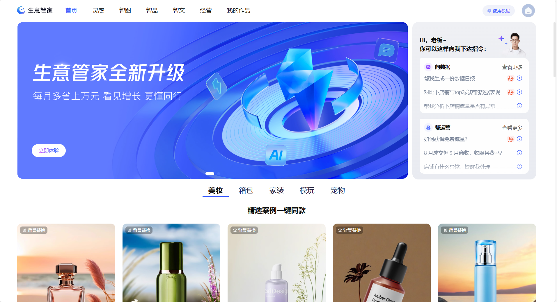 而面向商家,阿里推出的“生意管家”AI套件能帮店铺生成素材、诊断经营、自动接待顾客,最高可让素材成本降低九成,客服效率提升三成,让商家能把更多精力放在选品和运营上。