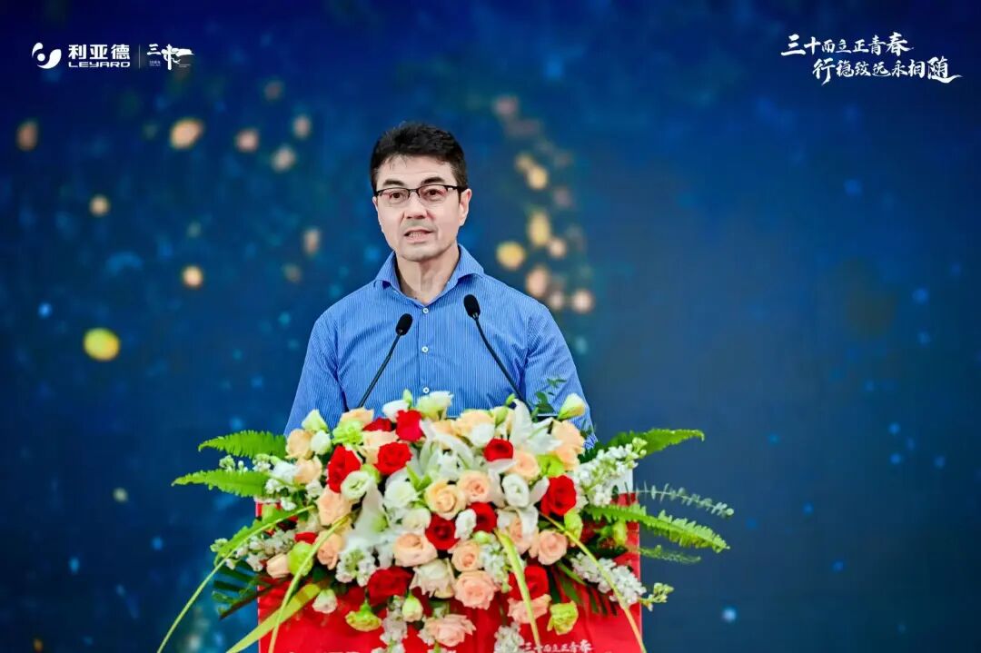 利亚德集团董事长李军在庆典开场深情致辞:“感谢为利亚德三十年辛勤付出的员工和亲爱的家属,感谢信任和支持我们的客户及合作伙伴(经销商),感谢让我们致富的投资者和资本市场,感谢改革开放的伟大时代”。 在回顾个人成长历程和利亚德发展史时,李军董事长分享了最值得骄傲的三件事:一是践行“共同富裕”理念,培育了30多名亿万富翁、数百名千万富翁及千名百万富翁;二是创新引领行业发展,以中国原创技术与产品成功占领世界高端市场;三是完成“国际化布局”,将利亚德的品牌和技术推向全球。 会上,李军董事长提出了利亚德的发展规划——全面拥抱AI,领创视效,开启第二增长曲线!持续弘扬“平等、信任、合作、共赢”的分享精神,与客户及合作伙伴携手并进,秉持共创、共享、共赢、共同发展的理念,为守护员工美好生活、铸就利亚德成为百年企业而奋勇拼搏!