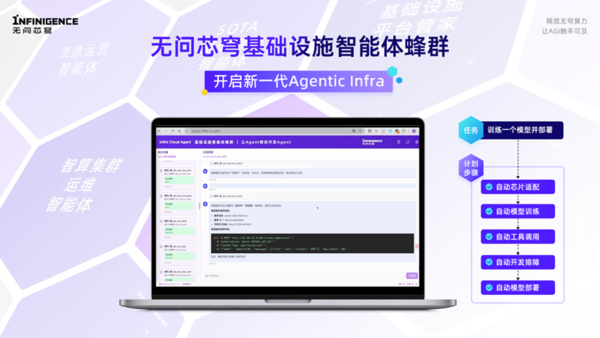 首次公开!无问芯穹推出基础设施智能体蜂群,打造新一代Agentic Infra,重构智能体生产新范式发表时间:2025-09-23 17:48 智能体(AI Agent)是 AI 演进的关键方向,正逐渐成为人机协同与机器自主决策的核心载体,并有望演进为未来智能社会的基本单元。而基础设施作为智能体落地的重要支撑,却仍然依赖大量“胶水代码”来机械拼合各个环节,并时常陷入这样的困境——宝贵的智算资源在静默中闲置,突发的故障让天价训练任务一夜中断,庞大的运维团队在无尽的告警和排障中疲于奔命——传统的工具链和人力运维模式,已无法应对智能体生产的动态性与复杂性。 我们需要对当下的智能体基础设施进行一次范式上的革新,让基础设施系统本身拥有自主决策、协同和进化的能力。凭借智能体的主动性和智能性,做出比人类手动操作更优、更快、更精准的决策,完成原本依赖顶尖专家高级脑力劳动才能完成的复杂工作,实现超越人类经验的卓越运营,以支持更高效、稳定与普惠的智能体创新。 今天,无问芯穹正式推出基础设施智能体蜂群,它是基于无问芯穹长期的 AI-Native 基础设施建设成果及经验沉淀,深度融合多智能体协同架构与行业场景需求,所提供的新一代基础设施智能化解决方案。通过封装SOTA模型筛选、基础设施平台管家、资源运营、答疑排障、智算集群运维等多个智能体模块,构建高度自治、动态协作的“基础设施智能体蜂群”体系,打造对基础设施全生命周期的智能感知、决策与执行闭环,显著提升资源利用率、运维效率与人工智能系统的可靠性,以相同的投入实现运维能力百倍拓展。