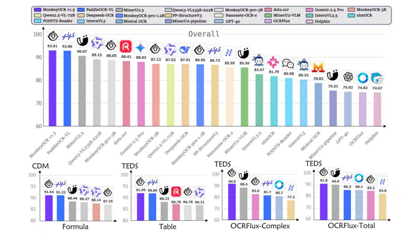 (图为MonkeyOCR v1.5再次突破多模态文档解析性能上限)