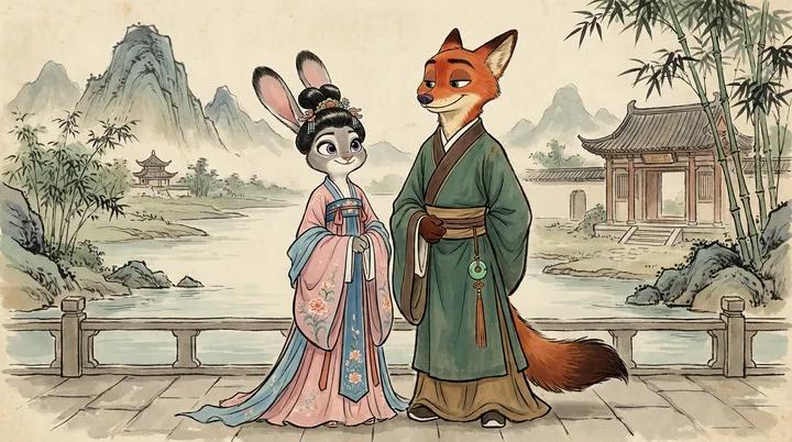 最近,你的朋友圈是不是也被《疯狂动物城2》的CP截图刷屏了?谁还没为尼克和朱迪这一对儿疯狂上头,露出“姨母笑”呢? 不过,官方发糖虽甜,但总是过于含蓄内敛,不够酣畅淋漓。这届硬核CP粉可等不了,秉承着“自己动手,丰衣足食”的原则,直接上手“产粮”,用AI创造自己想看的剧情了! 就拿我来说,心痒难耐之下,先让拍我AI(PixVerse)调用Nano banana pro画画了一张尼克与朱迪的古风合影。
