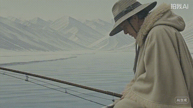 事实上,AI视频能否真正走向大众,关键点往往不在于画面有多精致,而在于它是否拥有“灵魂”,也就是我们常说的故事感、戏剧张力,拍我AI V5.5此次升级,正是精准地命中了这一痛点,它通过音频与镜头语言的协同,为生成的视频注入了前所未有的叙事逻辑,让我们一起感受下! 首先,作为国风爱好者,我浅浅尝试下极致的意境表达。 输入Prompt:“千山鸟飞绝,万径人踪灭。孤舟蓑笠翁,独钓寒江雪。配上舒缓的音乐”。生成的作品瞬间将人拉入那个寂寥、空旷的世界。画面中,寒江的孤寂感并非静态呈现,而是通过镜头的缓缓推移、远处水波的微澜、以及背景音乐悠远而空灵的旋律共同营造的。